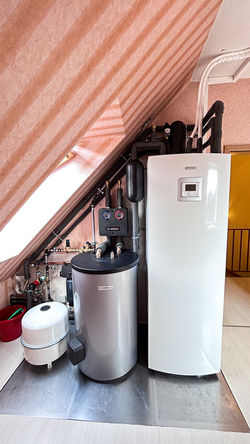 Manchmal stellen uns unsere Kunden vor ziemliche Herausforderungen. So auch dieses Mal. Im 2 OG dieses Reihenhauses war eine Gasheizung montiert die durch eine Wärmepumpenheizung ersetzt werden sollte. Nun wir haben die Herausforderung angenommen!